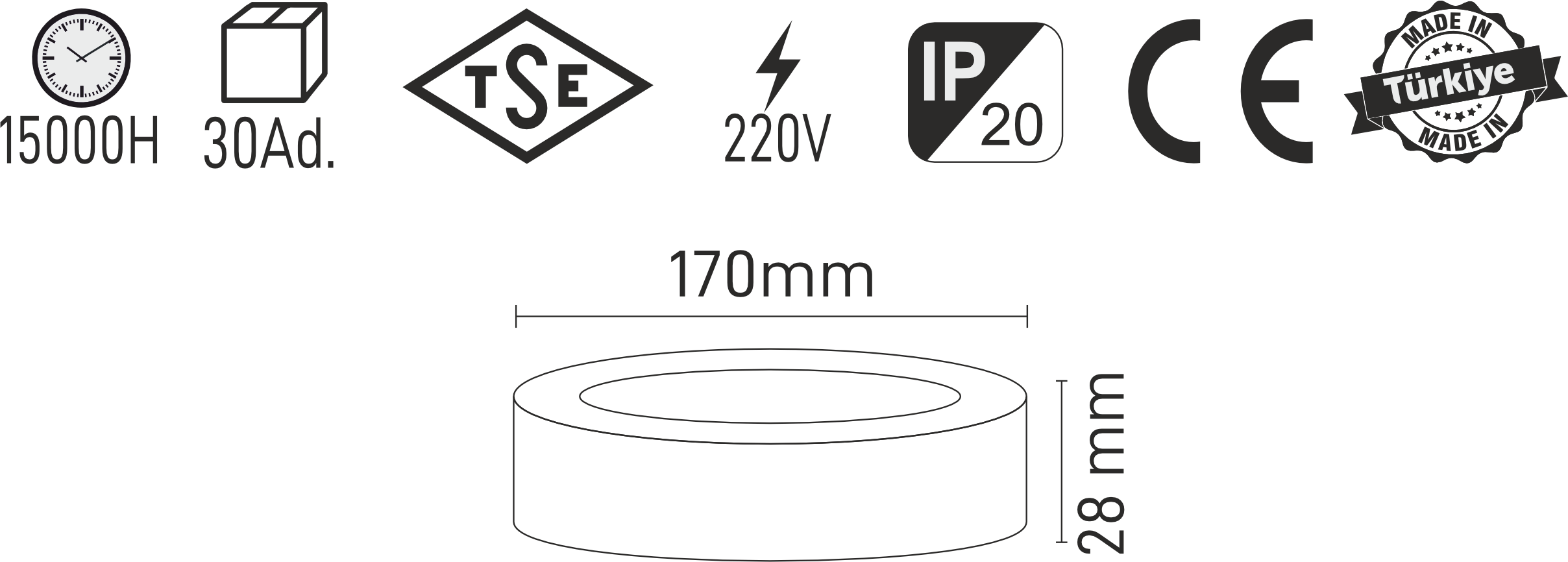 12W-Sıva Üstü Yuvarlak Led Panel